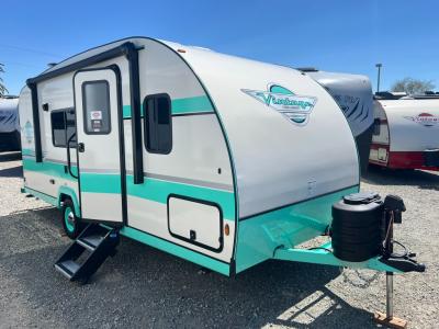 This travel trailer has the same layout as model 18MBS, but you'll enjoy a fixed RV queen bed up front instead of the Murphy bed. The full rear bath includes a linen closet and a wardrobe to keep your necessities organized, and you'll find additional storage throughout this model for your belongings. The vintage booth dinette will be the perfect place to dine at after dinner is made on the cooktop. There is also a microwave oven for quick meals and an 8 cu. ft. 12V refrigerator for cold drinks and perishables. And don't forget about the exterior pass-through storage for your larger camp gear!